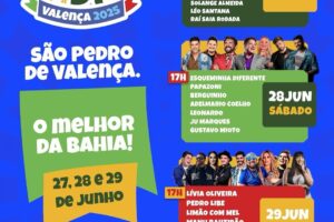 Valença se prepara para viver o maior São Pedro da Bahia Jornal Valença Agora 26 de junho de 2025 Baixo Sul, Notícias Valença está nos preparativos finais para receber o maior São Pedro da Bahia, que promete movimentar a cidade nos dias 27, 28 e 29 de junho. O evento vai ser realizado no espaço da Feira Livre, que passou...
