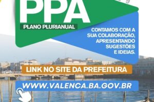 Valencianos podem contribuir para o Projeto do Plano Plurianual 2026-2029 até segunda-feira (11) Jornal Valença Agora 7 de agosto de 2025 Baixo Sul, Notícias A Prefeitura de Valença segue com a consulta pública online aberta para a construção do Plano Plurianual (PPA) 2026–2029. A participação da população é fundamental para garantir que as diretrizes e...