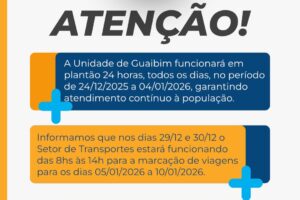 Prefeitura de Valença divulga funcionamento das unidades de saúde no período de fim de ano Jornal Valença Agora 24 de dezembro de 2025 Baixo Sul, Notícias Secretaria Municipal de Saúde organiza horários especiais de atendimento para garantir assistência à população durante as festividades A Prefeitura de Valença, por meio da Secretaria Municipal de...