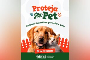 Vacinação Antirrábica será realizada nesta sexta-feira (6) em Valença Jornal Valença Agora 5 de fevereiro de 2026 Baixo Sul, Notícias A Prefeitura de Valença, por meio da Secretaria Municipal de Saúde, realiza nesta sexta-feira, 6 de fevereiro, a Vacinação Antirrábica para cães e gatos, com o objetivo de proteger os animais e prevenir...