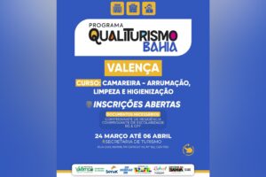Prefeitura de Valença abre inscrições para curso do Programa Qualiturismo Bahia Jornal Valença Agora 23 de março de 2026 Baixo Sul, Notícias Com foco na valorização do turismo e na geração de oportunidades, a Prefeitura de Valença, por meio da Secretaria de Turismo, está com inscrições abertas para o curso de Camareira: Arrumação, limpeza...