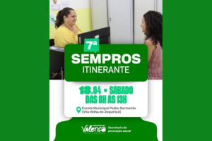SEMPROS Itinerante leva serviços gratuitos à comunidade de Vila Velha do Jequiriçá Jornal Valença Agora 15 de abril de 2026 Baixo Sul, Notícias A Prefeitura de Valença, por meio da Secretaria de Promoção Social, realiza neste sábado, 18 de abril, mais uma edição da SEMPROS Itinerante, ação que tem como objetivo descentralizar os serviços da...