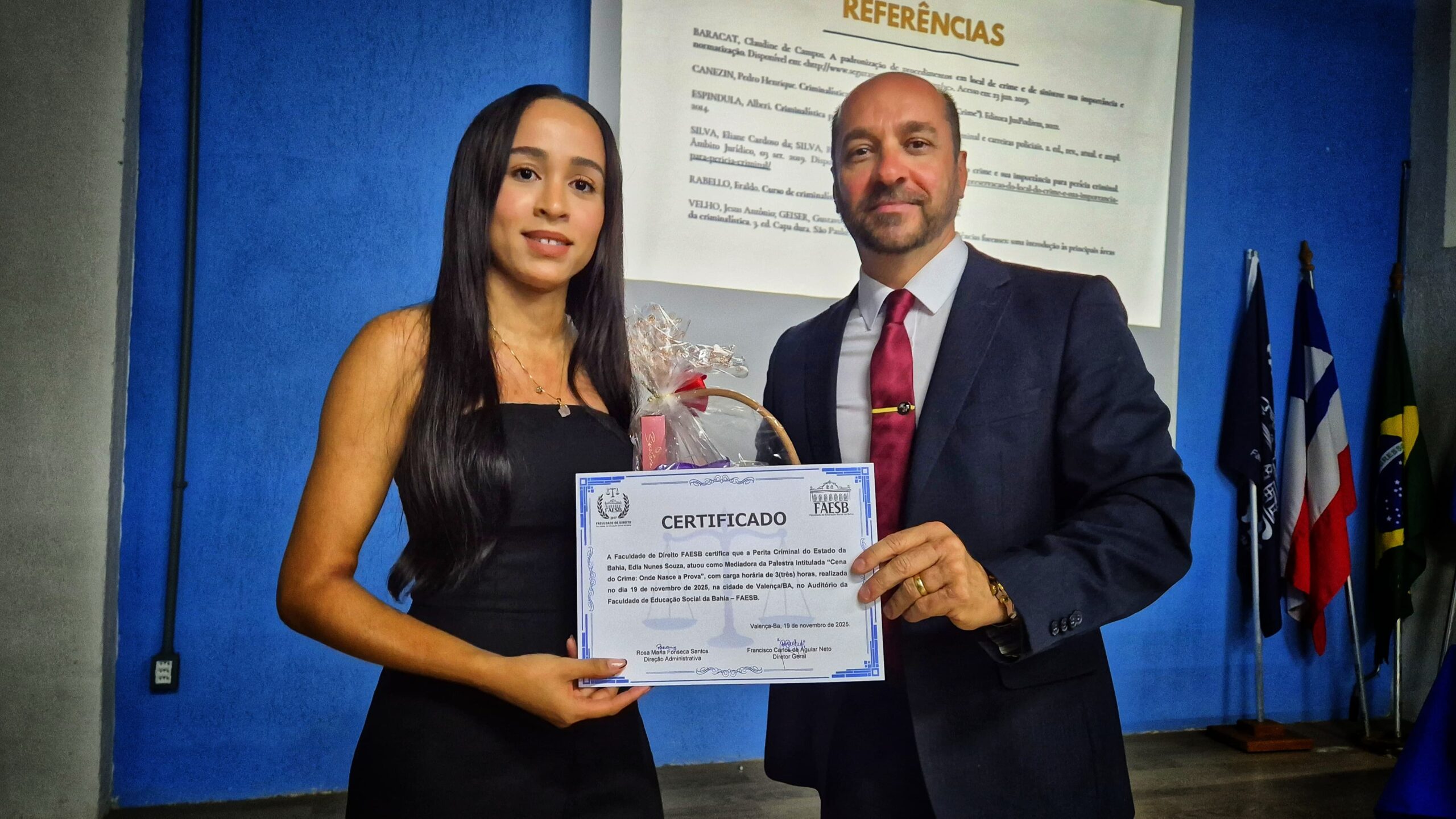 Faculdade Faesb promove palestra sobre investigação criminal Jornal Valença Agora 26 de novembro de 2025 Baixo Sul, Notícias Dando continuidade ao círculo de palestras promovidas pela Faculdade de Direito FAESB, no auditório do Paço Imperial, a instituição recebeu a Dra. Edla Nunes, Perita Criminal da Polícia Civil do Estado da Bahia, Coordenadora da Polícia Técnica de Valença e região, que proferiu palestra com o tema: “Na Cena do Crime: Onde nasce a Prova”. O evento foi organizado pela turma GAMA de Direito FAESB, sob a supervisão do Prof. Francisco Neto, docente na disciplina Criminologia. A atividade, caracterizada como Extensão Universitária, foi aberta não apenas aos discentes da FAESB, mas também a alunos de outras instituições de ensino e à comunidade em geral. A palestra abordou temas relevantes sobre a coleta e análise de provas em cenas de crime, proporcionando aos presentes uma visão técnica e prática sobre o trabalho dos peritos criminais. A iniciativa reforça o compromisso da Faculdade FAESB em promover atividades que integrem a comunidade acadêmica e a sociedade, contribuindo para a disseminação do conhecimento e o debate sobre temas de interesse público. Fonte/Fotos: Faculade Faesb Deixe uma resposta Cancelar respostaSeu endereço de email não será publicado.ComentarNome* Email* Website Salvar meus dados neste navegador para a próxima vez que eu comentar.