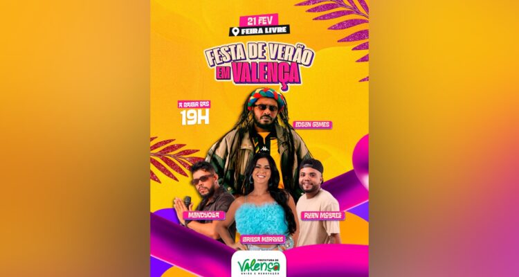 Festa de Verão movimenta Valença neste sábado Jornal Valença Agora 20 de fevereiro de 2026 Baixo Sul, Notícias Evento gratuito na Feira Livre reúne nomes nacionais e artistas locais A Prefeitura de Valença realiza, neste sábado (21), a primeira edição da Festa de Verão no município. O evento acontece a partir das 19h, na Feira Livre, que receberá estrutura organizada, esquema de segurança reforçado e oferta de serviços essenciais para garantir conforto e tranquilidade ao público. Entre as atrações confirmadas está o cantor Edson Gomes, um dos principais nomes do reggae nacional, que sobe ao palco com um repertório marcado por sucessos consagrados ao longo de décadas de carreira. A programação também conta com a participação da cantora Larissa Marques, artista revelação do Carnaval 2024, que se apresenta com repertório de axé e pagode. Segundo a organização, a artista participará do evento de forma voluntária, sem cobrança de cachê, contribuindo para a viabilização da primeira edição da festa. Completam a grade os artistas valencianos Ruan Moraes e Mendyola, reforçando a valorização da produção musical local e a diversidade cultural da cidade. O Prefeito Marcos Medrado destacou a importância do evento para movimentar a economia local, fomentar o entretenimento e valorizar a diversidade cultural da cidade. “Seguimos trabalhando para promover ações que impulsionem nossa economia, levem lazer e cultura à população. A Festa de Verão de Valença, já nasce com grande expectativa, graças também à parceria e ao compromisso dos artistas que abraçam esse projeto conosco”, afirmou. “Estamos preparando um evento pensado com muito carinho para a população, valorizando nossos artistas, promovendo o encontro das famílias e fortalecendo a identidade cultural de Valença. Será uma noite especial, feita para emocionar e celebrar a nossa cidade”, destacou o Secretário de Cultura, David Terra. A expectativa é de que a Festa de Verão reúna moradores e visitantes em uma noite de celebração e entretenimento no município. com informações da Secom PMV Deixe uma resposta Cancelar respostaSeu endereço de email não será publicado.ComentarNome* Email* Website Salvar meus dados neste navegador para a próxima vez que eu comentar.