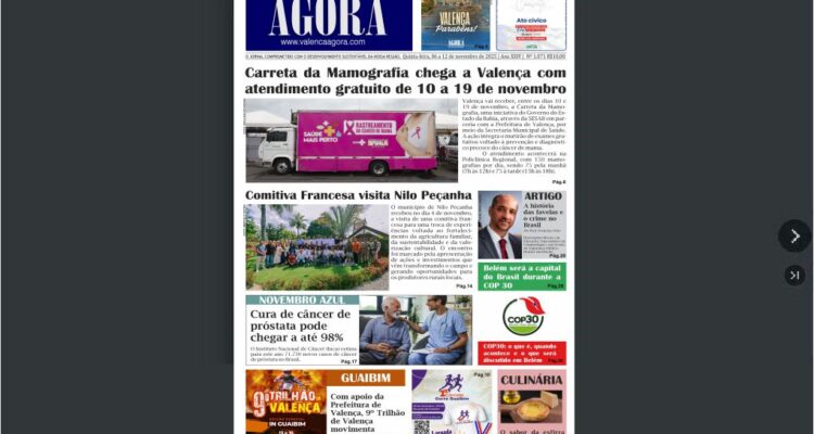 Jornal Valença Agora Edição nº. 1071 Valença Agora 7 de novembro de 2025 Baixo Sul, Edição da semana, Notícias 📲 Edição Online – Clique aqui para folhear o JVA, Edição 1.071 🧾 Para ler a edição em PDF, acesse: JVA Edição 1.071 Deixe uma resposta Cancelar respostaSeu endereço de email não será publicado.ComentarNome* Email* Website Salvar meus dados neste navegador para a próxima vez que eu comentar.