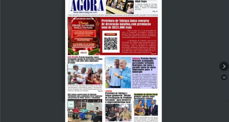 Jornal Valença Agora Edição nº. 1074 Valença Agora 28 de novembro de 2025 Baixo Sul, Edição da semana 📲 Edição Online – Clique aqui para folhear o JVA, Edição 1.074 🧾 Para ler a edição em PDF, acesse: JVA Edição 1.074 Deixe uma resposta Cancelar respostaSeu endereço de email não será publicado.ComentarNome* Email* Website Salvar meus dados neste navegador para a próxima vez que eu comentar.