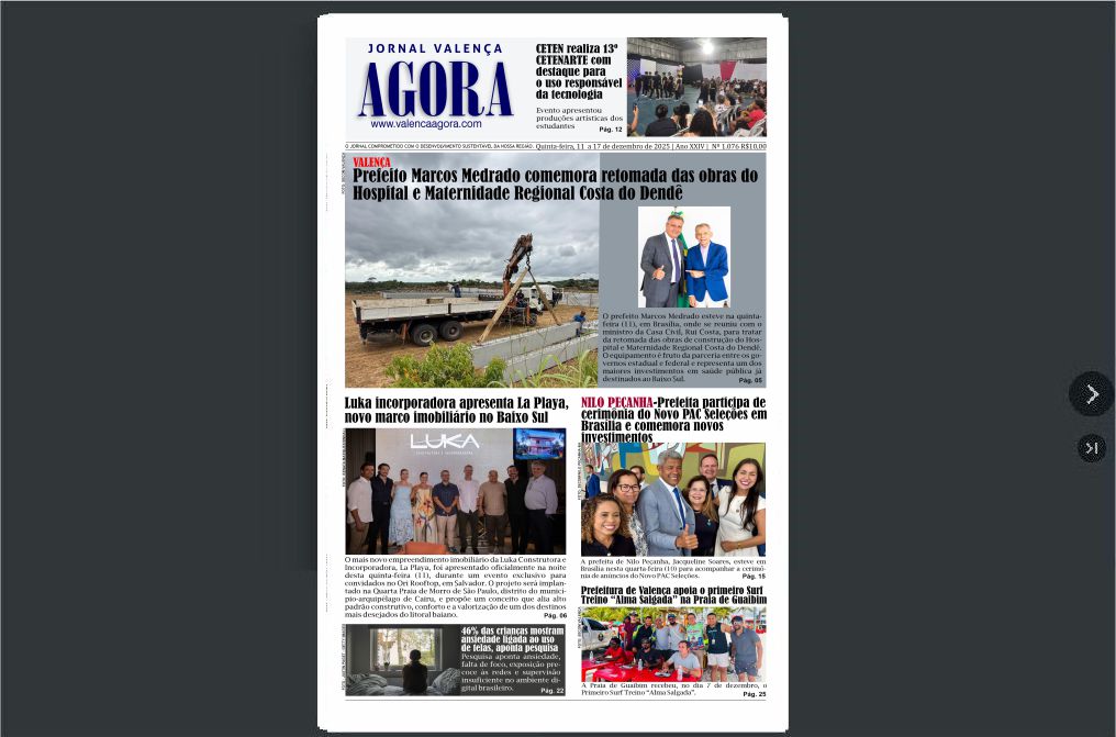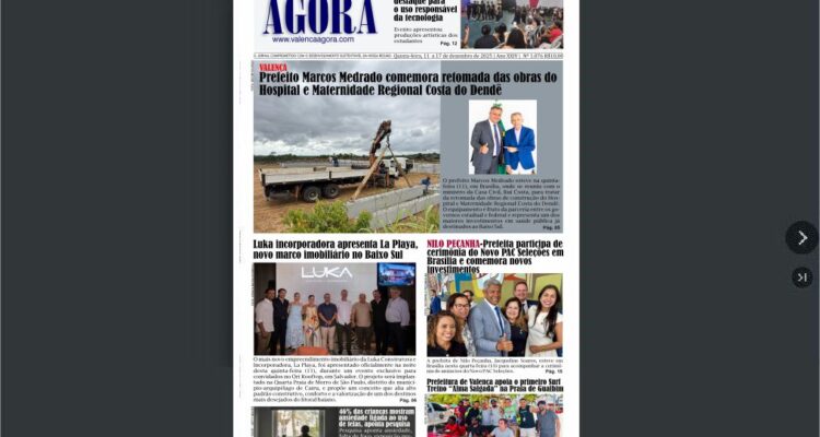 Jornal Valença Agora Edição nº. 1076 Valença Agora 13 de dezembro de 2025 Baixo Sul, Edição da semana, Notícias Edição Online – Clique aqui para folhear o JVA, Edição 1.076 Para ler a edição em PDF, acesse: JVA Edição 1.076 Deixe uma resposta Cancelar respostaSeu endereço de email não será publicado.ComentarNome* Email* Website Salvar meus dados neste navegador para a próxima vez que eu comentar.