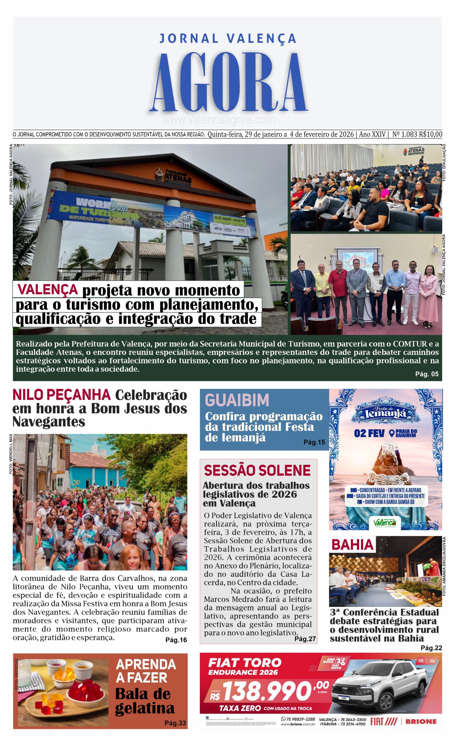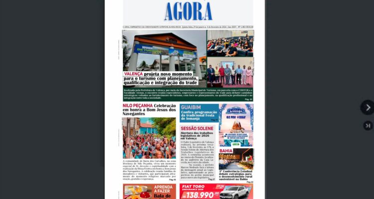 Jornal Valença Agora Edição nº. 1083 Valença Agora 30 de janeiro de 2026 Baixo Sul, Edição da semana, Notícias Edição Online – Clique aqui para folhear o JVA, Edição 1.083 Para ler a edição em PDF, acesse: JVA Edição 1.083 Deixe uma resposta Cancelar respostaSeu endereço de email não será publicado.ComentarNome* Email* Website Salvar meus dados neste navegador para a próxima vez que eu comentar.