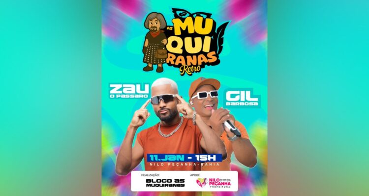 Muquiranas de Nilo Peçanha reforçam tradição cultural com grande festa no dia 11 de janeiro Jornal Valença Agora 5 de janeiro de 2026 Baixo Sul, Notícias Uma das tradições culturais mais irreverentes e aguardadas de Nilo Peçanha já tem data, hora e programação oficial confirmadas. O Bloco As Muquiranas, símbolo de alegria, criatividade e identidade cultural do município, promete mais uma edição histórica no próximo dia 11 de janeiro, reunindo moradores, visitantes e foliões de toda a região. Após dias de expectativa e muita curiosidade nas redes sociais, a organização divulgou oficialmente o card do evento, colocando fim aos boatos e confirmando o que todos queriam saber: é oficial mesmo. A programação começa às 15h, com grandes atrações que vão comandar a festa pelas ruas da cidade: 🎤 Zau O Pássaro 🎤 Gil Barbosa 📅 11 de janeiro ⏰ 15h 📍 Nilo Peçanha Conhecido pelo clima irreverente e pela criatividade dos participantes, o Bloco As Muquiranas se consolidou ao longo dos anos como uma importante manifestação cultural do município, preservando a tradição carnavalesca e fortalecendo o sentimento de pertencimento da população. A edição Muquiranas Retrô chega com ainda mais energia, resgatando o espírito original da festa e prometendo muita animação. O evento conta com o apoio da Prefeitura Municipal de Nilo Peçanha, reafirmando o compromisso da gestão com a valorização da cultura, do lazer e das tradições populares que fazem parte da identidade local. Agora que tudo está confirmado, fica a pergunta que realmente importa: já separou a fantasia? As Muquiranas vêm com tudo, e Nilo Peçanha se prepara para viver mais um grande momento de celebração cultural e alegria coletiva. Fonte: Ascom PMNPeçanha Deixe uma resposta Cancelar respostaSeu endereço de email não será publicado.ComentarNome* Email* Website Salvar meus dados neste navegador para a próxima vez que eu comentar.