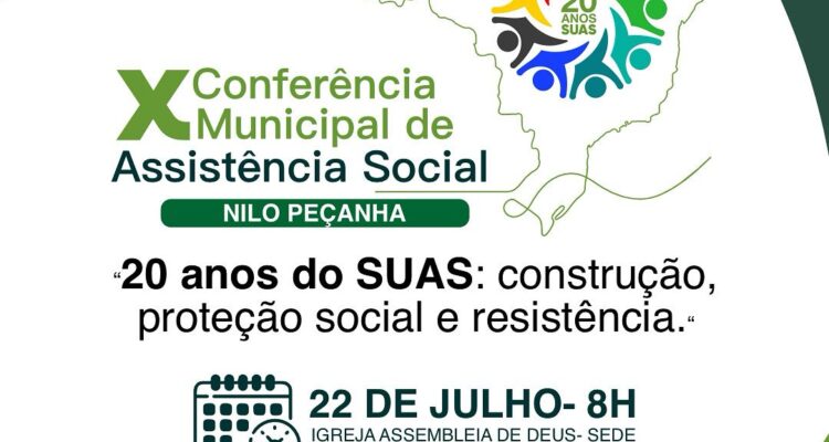 O município de Nilo Peçanha, no Baixo Sul da Bahia, realizará no próximo dia 22 de julho a X Conferência Municipal de Assistência Social. O evento é promovido pelo Conselho Municipal de Assistência Social (CMAS) em parceria com a Prefeitura e será realizado na Igreja Evangélica Assembleia de Deus – Sede, a partir das 8h.