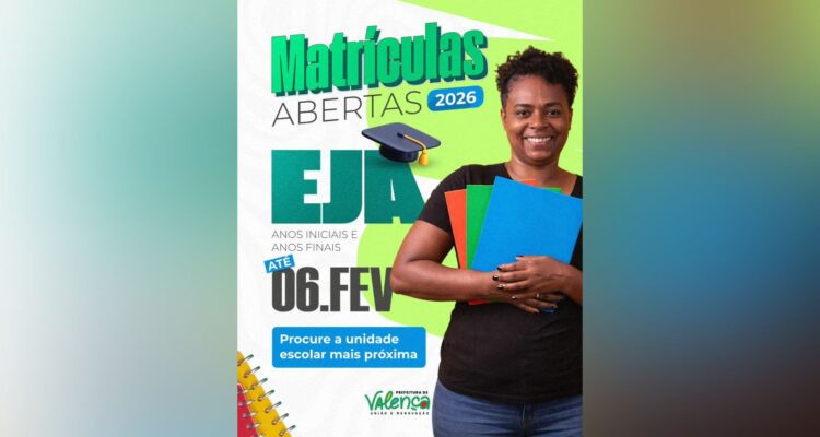 Prefeitura de Valença está com inscrições abertas para a EJA 2026 até 6 de fevereiro Jornal Valença Agora 23 de janeiro de 2026 Baixo Sul, Notícias A Prefeitura de Valença está com inscrições abertas para a Educação de Jovens e Adultos (EJA) referente ao ano letivo de 2026. A iniciativa representa uma nova chance para quem, por diferentes motivos, precisou interromper os estudos e agora deseja retomar a trajetória escolar. O programa atende tanto os Anos Iniciais, que incluem alfabetização e séries iniciais, quanto os Anos Finais do Ensino Fundamental. Mais do que a retomada do aprendizado em sala de aula, a EJA abre caminhos para melhores oportunidades no mercado de trabalho e para a realização de projetos de vida. Com o lema “Nunca é tarde para recomeçar”, a gestão municipal reforça o convite para que pessoas de todas as idades invistam na própria formação. Para garantir a vaga, os interessados devem procurar a unidade escolar mais próxima de sua residência, munidos de documentos pessoais: cópia da certidão de nascimento ou casamento, RG, CPF, duas fotos 3×4 recentes, histórico escolar original ou atestado escolar, além do comprovante de residência. “Em caso de dúvidas, a orientação é buscar informações diretamente na escola mais próxima”, conforme orienta a coordenadora técnica da EJA, Lidiane Barreto. O secretário municipal de Educação, Gerson Guimarães, destacou que a rede está se preparando para um início de ano letivo organizado e acolhedor. “A previsão é que as aulas tenham início no dia 23 de fevereiro, com todas as unidades prontas para receber nossos estudantes com qualidade e segurança. É uma oportunidade para quem deseja transformar o futuro por meio da educação”, afirmou. Fonte: Secretaria de Comunicação| SECOM Prefeitura Municipal de Valença Deixe uma resposta Cancelar respostaSeu endereço de email não será publicado.ComentarNome* Email* Website Salvar meus dados neste navegador para a próxima vez que eu comentar.