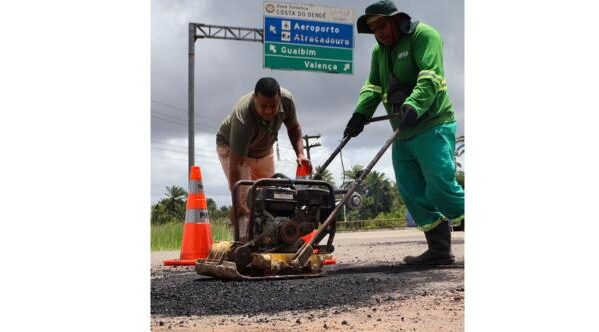 Prefeitura de Valença garante mais segurança e mobilidade nas vias que conectam Valença ao Guaibim e Atracadouro Jornal Valença Agora 28 de outubro de 2025 Baixo Sul, Notícias A Prefeitura de Valença segue avançando com ações de melhoria na infraestrutura viária do município. Com recursos próprios, a gestão está executando a Operação Tapa-Buracos nas rodovias BA-887, que liga Valença ao distrito de Guaibim, e BA-885, que dá acesso ao Atracadouro. A iniciativa tem como objetivo garantir mais segurança e conforto a motoristas, pedestres e turistas que circulam diariamente por essas importantes vias. Os serviços incluem a remoção do asfalto danificado, limpeza e varrição da área afetada, além da aplicação de asfalto a frio e compactação com placa vibratória, o que assegura maior durabilidade e qualidade ao pavimento. “Estamos trabalhando com planejamento e responsabilidade para manter as vias em boas condições de uso. Essa intervenção é fundamental para reduzir riscos de acidentes, melhorar o fluxo de veículos e fortalecer o acesso a importantes áreas turísticas e comerciais de Valença”, destacou o secretário de Infraestrutura, Alan Ainsworth. Fonte/Foto: Secom Prefeitura de Valença Deixe uma resposta Cancelar respostaSeu endereço de email não será publicado.ComentarNome* Email* Website Salvar meus dados neste navegador para a próxima vez que eu comentar.