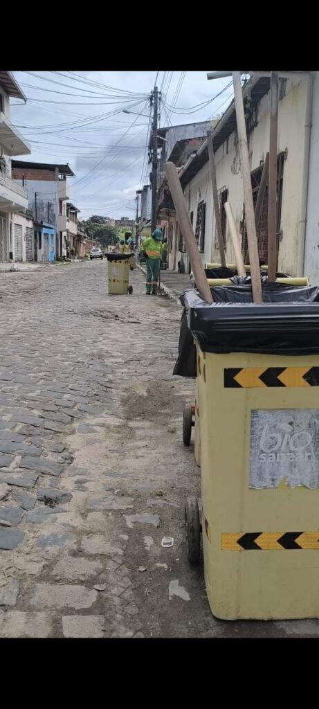 Prefeitura de Valença realiza ações intensivas de limpeza urbana Jornal Valença Agora 28 de outubro de 2025 Baixo Sul, Notícias A Prefeitura de Valença, por meio da Secretaria de Mobilidade e Ordem Pública (SEMOP), em parceria com a empresa Biosanear, segue realizando ações intensivas de limpeza urbana em diversos pontos da cidade. O trabalho inclui varrição, capina, coleta, lavagem de vias e manutenção de áreas públicas, promovendo um ambiente mais limpo, organizado e agradável para a população. “Com atuação contínua e planejamento eficiente, os serviços vêm sendo executados em tempo recorde, garantindo que os espaços públicos estejam sempre bem cuidados. A gestão segue trabalhando para construir uma Valença cada vez mais bonita e melhor para viver”, destaca o Executivo. Vídeo publicitário – Prefeitura de Valença: http://valencaagora.com/wp-content/uploads/2025/10/WhatsApp-Video-2025-10-30-at-14.44.09.mp4 Fonte/Fotos: Secom Valença Deixe uma resposta Cancelar respostaSeu endereço de email não será publicado.ComentarNome* Email* Website Salvar meus dados neste navegador para a próxima vez que eu comentar.