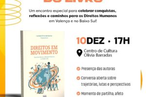 Valença realiza o “Chá com Direitos” e lançamento do livro Direitos em Movimento em celebração ao Dia Internacional dos Direitos Humanos nesta quarta-feira (10) Jornal Valença Agora 9 de dezembro de 2025 Baixo Sul, Notícias A Secretaria Municipal de Promoção Social, por meio do Departamento de Direitos Humanos, promove nesta quarta-feira, 10 de dezembro, a partir das 15h, no Centro de Cultura Olívia Barradas, o evento “Chá...