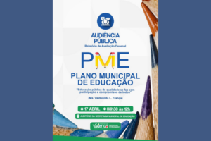 Valença realiza audiência pública para avaliação do Plano Municipal de Educação Jornal Valença Agora 9 de abril de 2026 Baixo Sul, Notícias A Prefeitura de Valença, por meio da Secretaria Municipal de Educação, promove no próximo dia 17 de abril uma audiência pública para apresentação do Relatório de Avaliação Decenal do Plano Municipal...