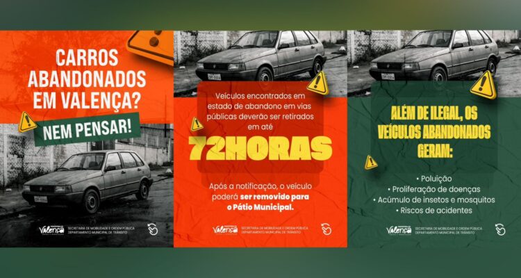 A Prefeitura reforça que cuidar da cidade é um compromisso coletivo. Pequenas atitudes, como evitar o abandono de veículos e comunicar situações irregulares, contribuem diretamente para uma Valença mais organizada, acessível e agradável para quem vive e circula pelo município.