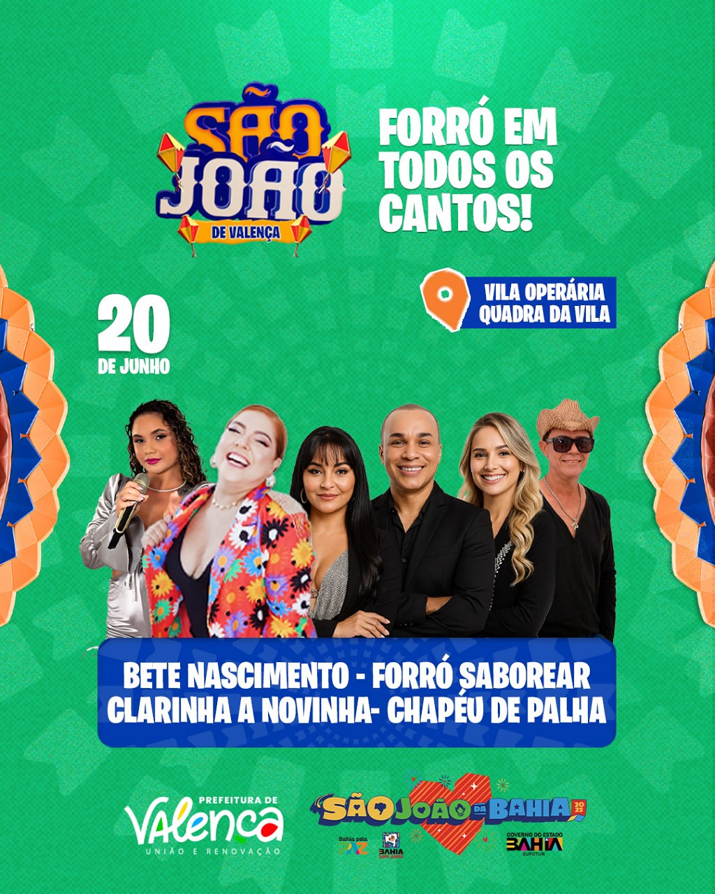 Com uma programação repleta de música, dança, gastronomia, cultura e investimentos em infraestrutura e segurança, Valença está pronta para viver um dos maiores São João e São Pedro de sua história. “Será um São João especial para todos os bairros de Valença. Vamos movimentar nossa cidade, fortalecer o comércio local e, principalmente, valorizar os talentos da nossa terra. Nossa cultura merece ser celebrada por todos, em cada canto da cidade”, concluiu o prefeito Marcos Medrado.